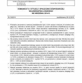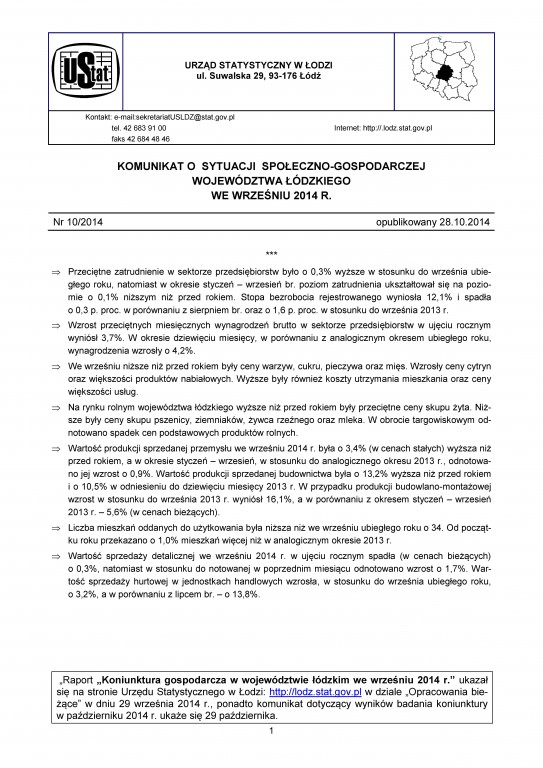Komunikat o sytuacji społeczno-gospodarczej województwa łódzkiego (wrzesień 2014 r.)